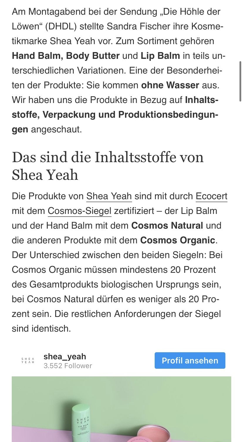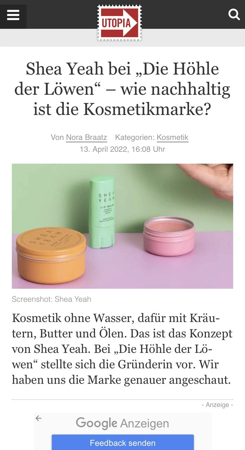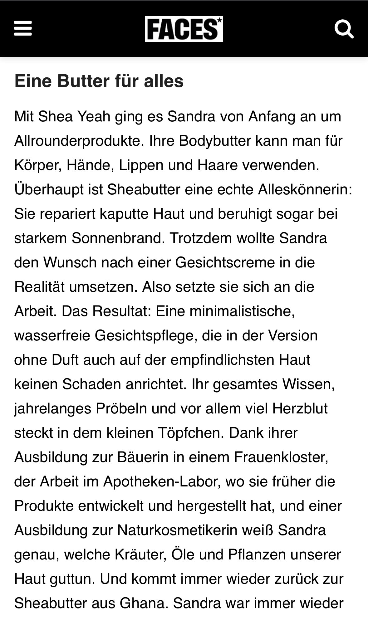 Es gibt viele gute Gründe über SHEA YEAH zu berichten, yeah! Über bewusste, wasserfreie Beauty-Produkte und Inhaltsstoffe, die Sheabutter-Produktion in Ghana, Upcycling und Nachhaltigkeit oder den Rollercoaster als Start-up Gründerin.