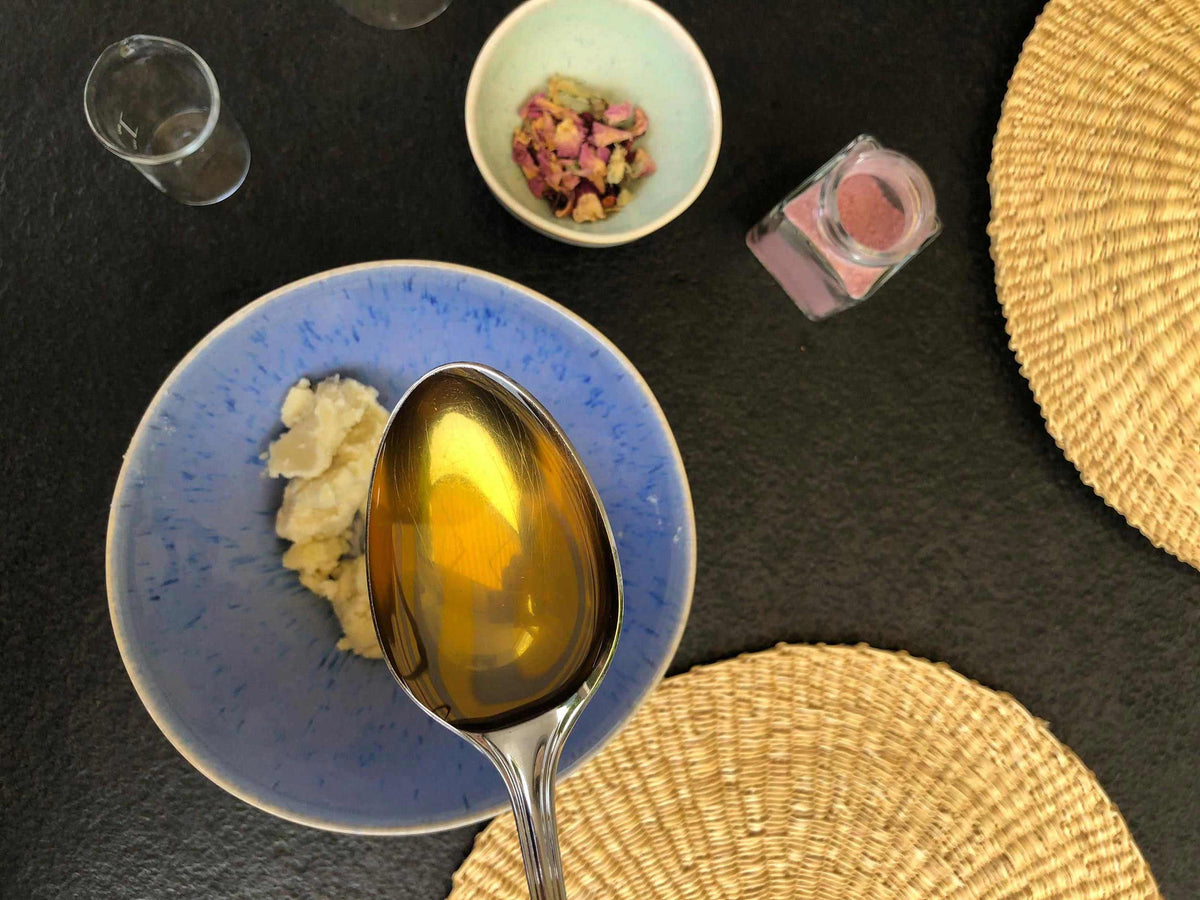 Wie Du beispielsweise Deine Sheabutter in einem Wasserbad richtig schmilzt, erfährst Du in unserem Blog.